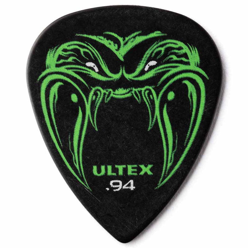 From ass-kicking Metallica epics like "Motor Breath" to new thrashers like "Cyanide", riff master James Hetfield's venomous style has inspired many. Preferring picks with a bright tone and biting attack, Hetfield looked to Dunlop for the perfect tool for his fierce downward picking style. Based on a vintage tortoise-shell pick, the Black Fang Pick is made of tough, sturdy Ultex material with a defined tone and sharp attack. Its pointed and contoured tip gives you ultimate speed and control—perfect for players looking to unleash their tone clearer, faster, and with unrivaled precision. "It's fast, bright, and strong because of its hard point and material," says the man himself. "It gives you everything you need—just add venom."