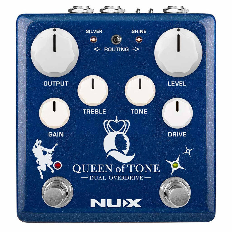 On the right side of the pedal is the Morning Star with SHINE mode. The Morning Star is based on the legendary Bluesbreaker circuit: a very transparent, low gain drive. Like NUX's Morning Star, it also features a simple foot switch hold to engage the iconic SHINE mode for a crystal clear treble boosted tone.