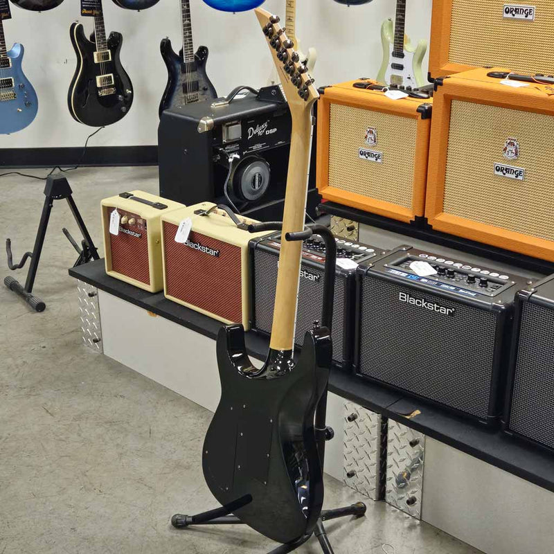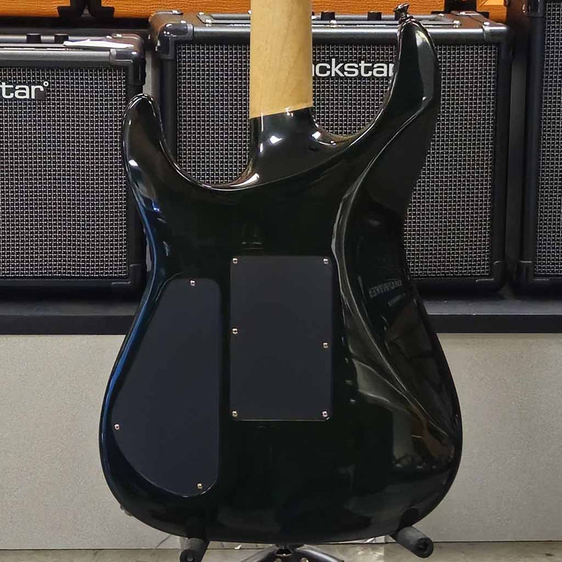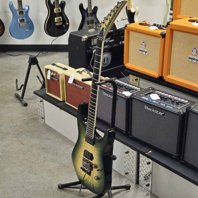 This used Jackson SL2Q pro series soloist is a shred machine! If you need a guitar that can handle your lighting fast playing, look no further! With it's 25.5" scale length, and a 12"-16" compound fretboard radius, you can set the action super low! Featuring a mahogany body, paired with a quilt maple top in this sick alien burst finish! Loaded with Seymour Duncan TB-6 (distortion), Seymour Duncan SH-6 (distortion), with a 3-way switch and volume and tone control, you can really dial in that tone. The Floydrose 1000 series locking trem for any of your whammy needs! It's in excellent condition with little to no wear. It's been fully setup by our in house tech as well!