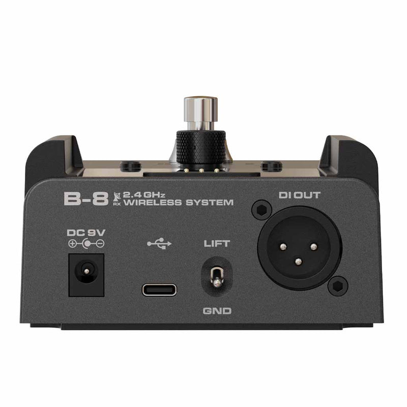 The B-8 combines multiple practical features into one unit, including wireless transmission, tuner, junction box, boost, buffer, DI functions, guitar input and a magnetic charging port for the transmitter. This all-in-one design greatly simplifies stage equipment connection and control, improving live performance efficiency.