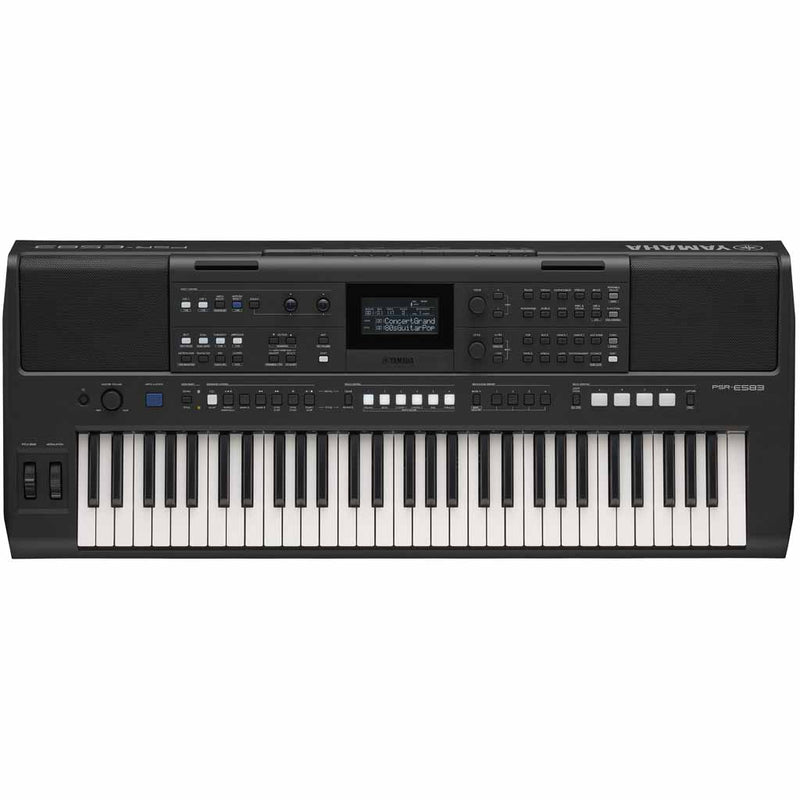 Offering immediate access to all the operations and functions you need to take your performance to the next level, including Live Control Knobs, Modulation wheel and a Pitch Bend wheel, the Yamaha PSR-E583 delivers precision control for every aspect of your performance. The intuitive grid panel layout and clear display screen allow you to quickly see the status of your instrument, putting your most used selections right at your fingertips. Easy access to Voices, Styles and functions let you focus your time on being creative.